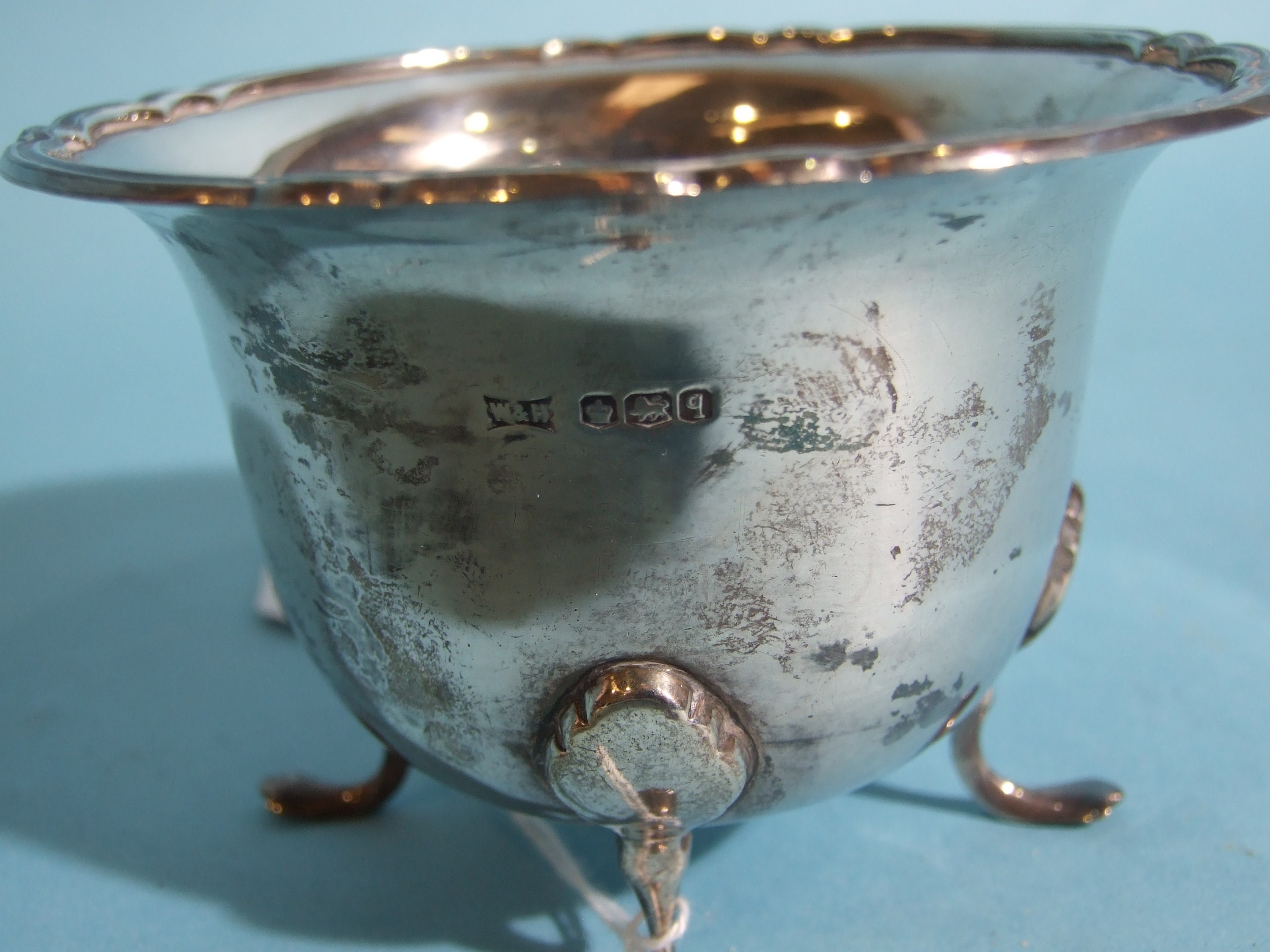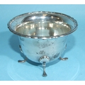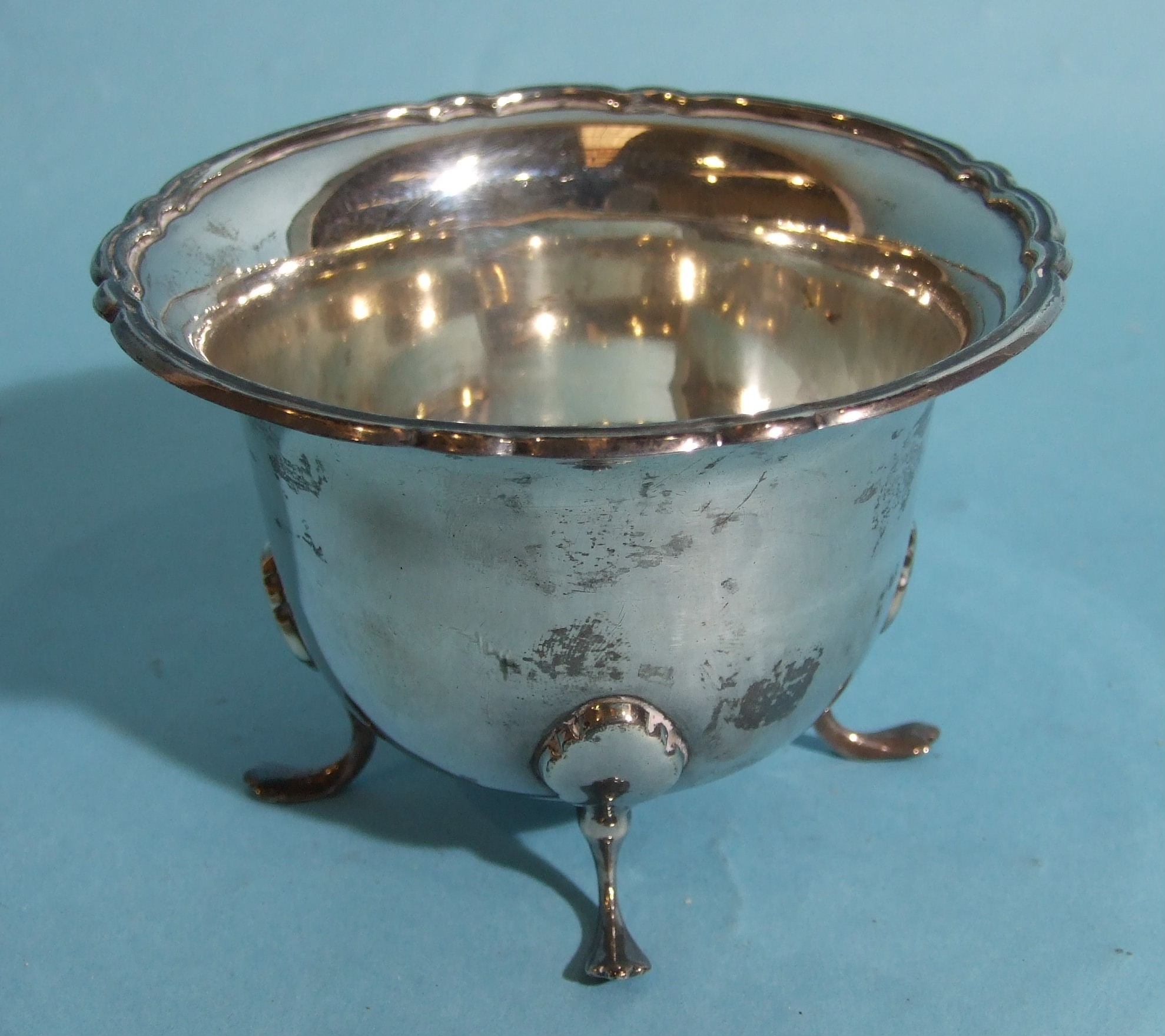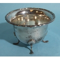 A Walker & Hall silver sugar bowl with wavy rim, on four shaped feet, 10.5cm diameter, 7cm high, Sheffield 1933, 132.7g, ___4.26oz.
