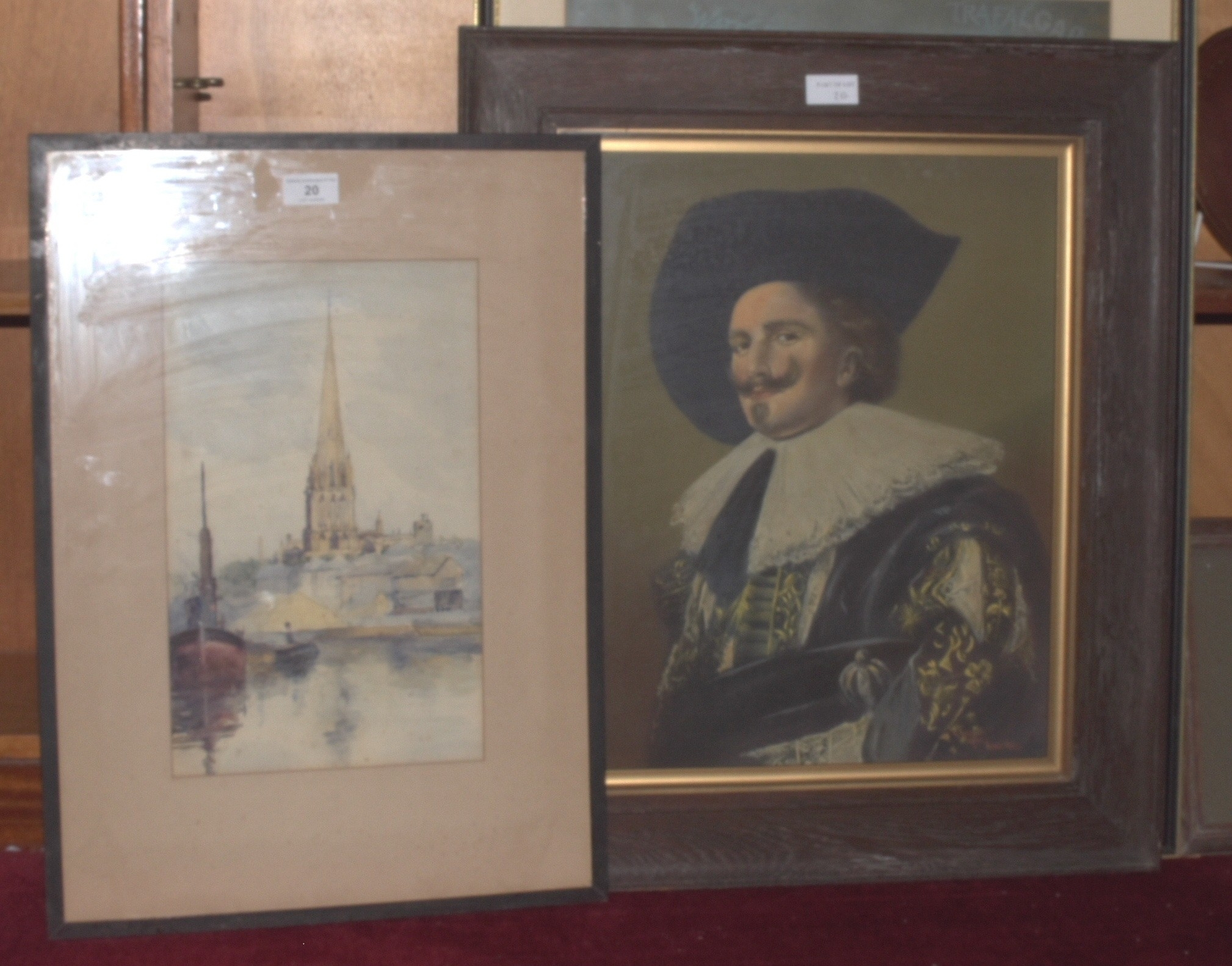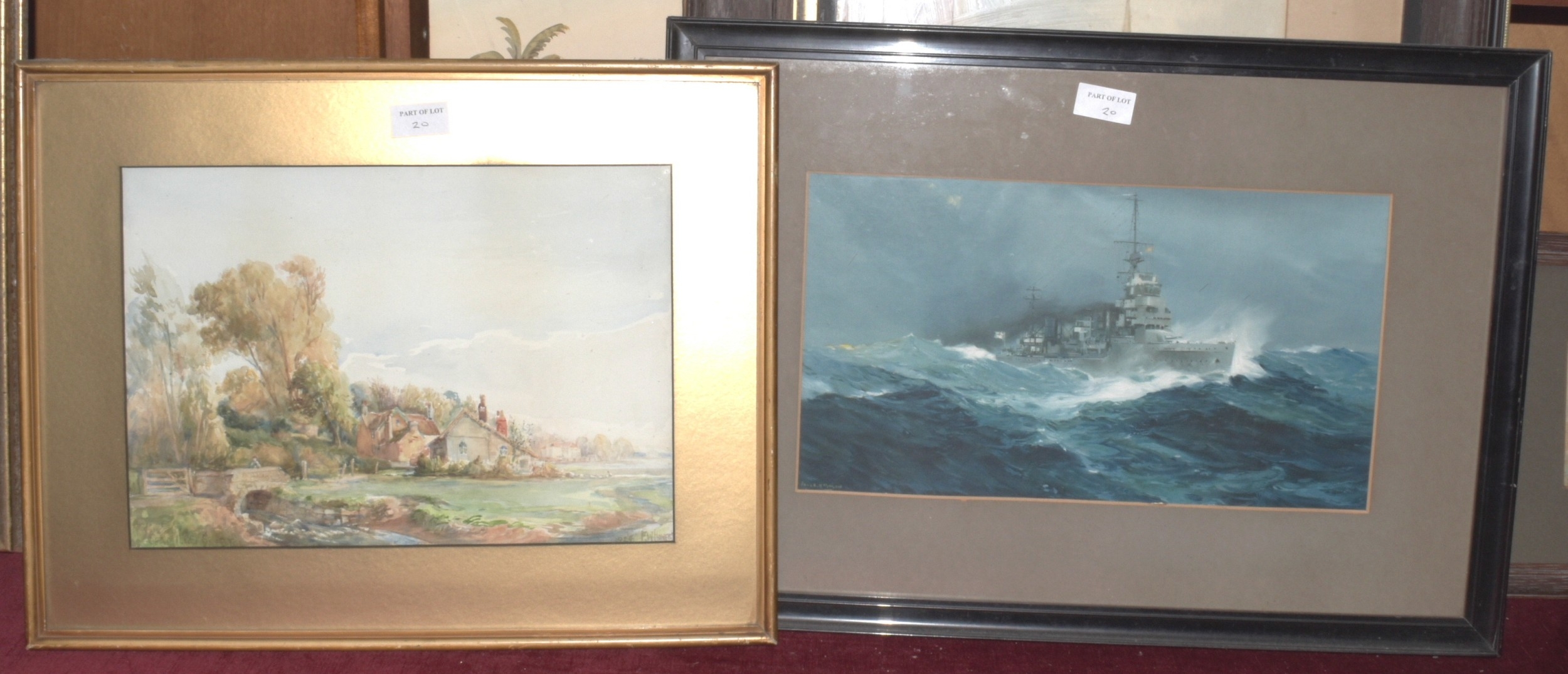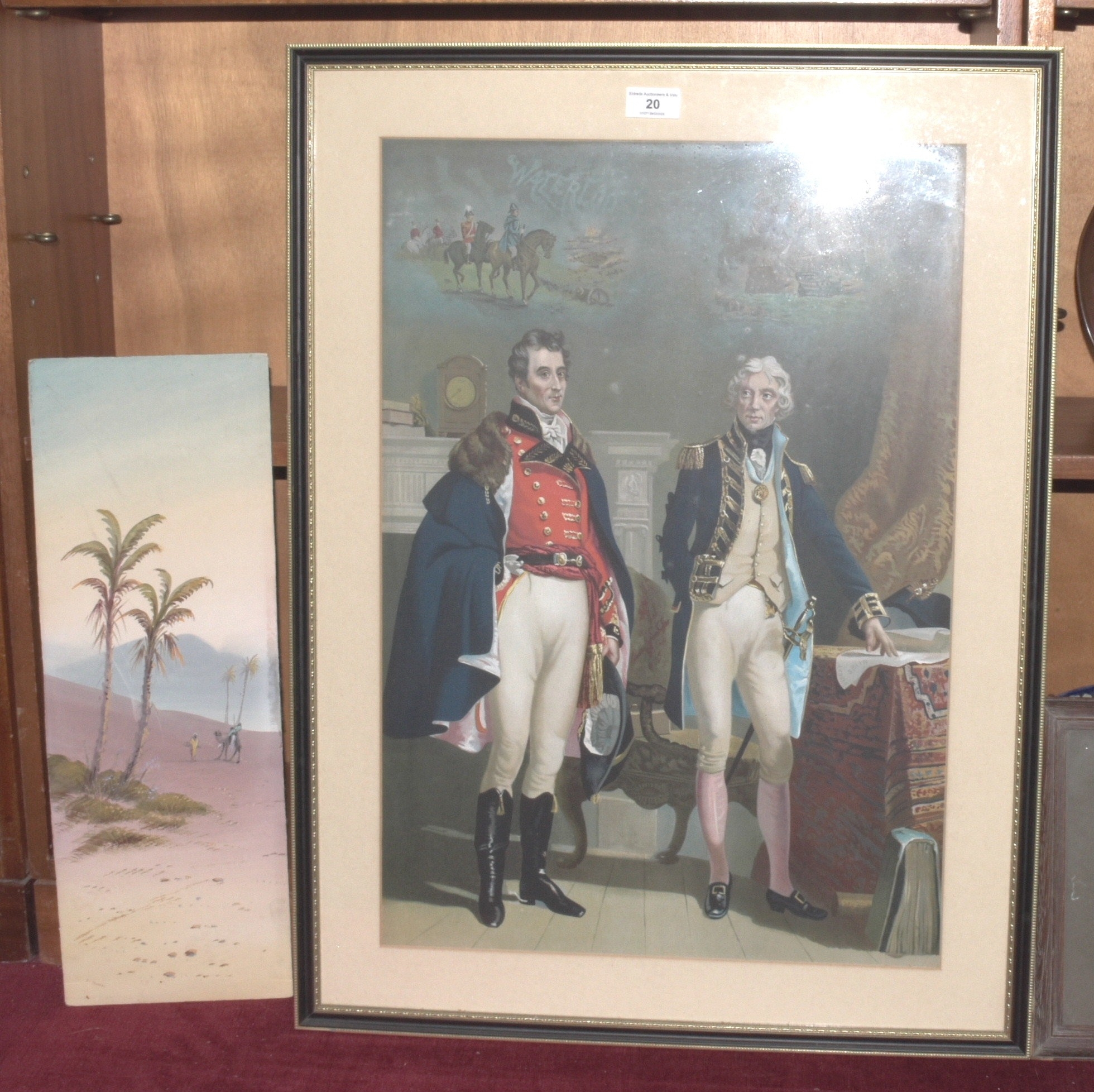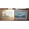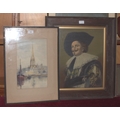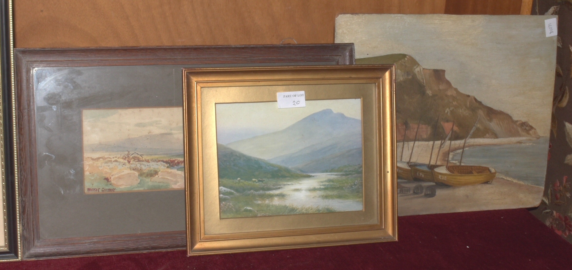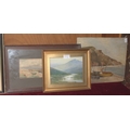 Rubens Southey (1881-1933), 'Brent Tor', signed watercolour, 10.5 x 28.5cm, J Monti 'Camel and figures in a desert', signed unframed watercolour, 50.5 x 17.5cm and other pictures and prints.