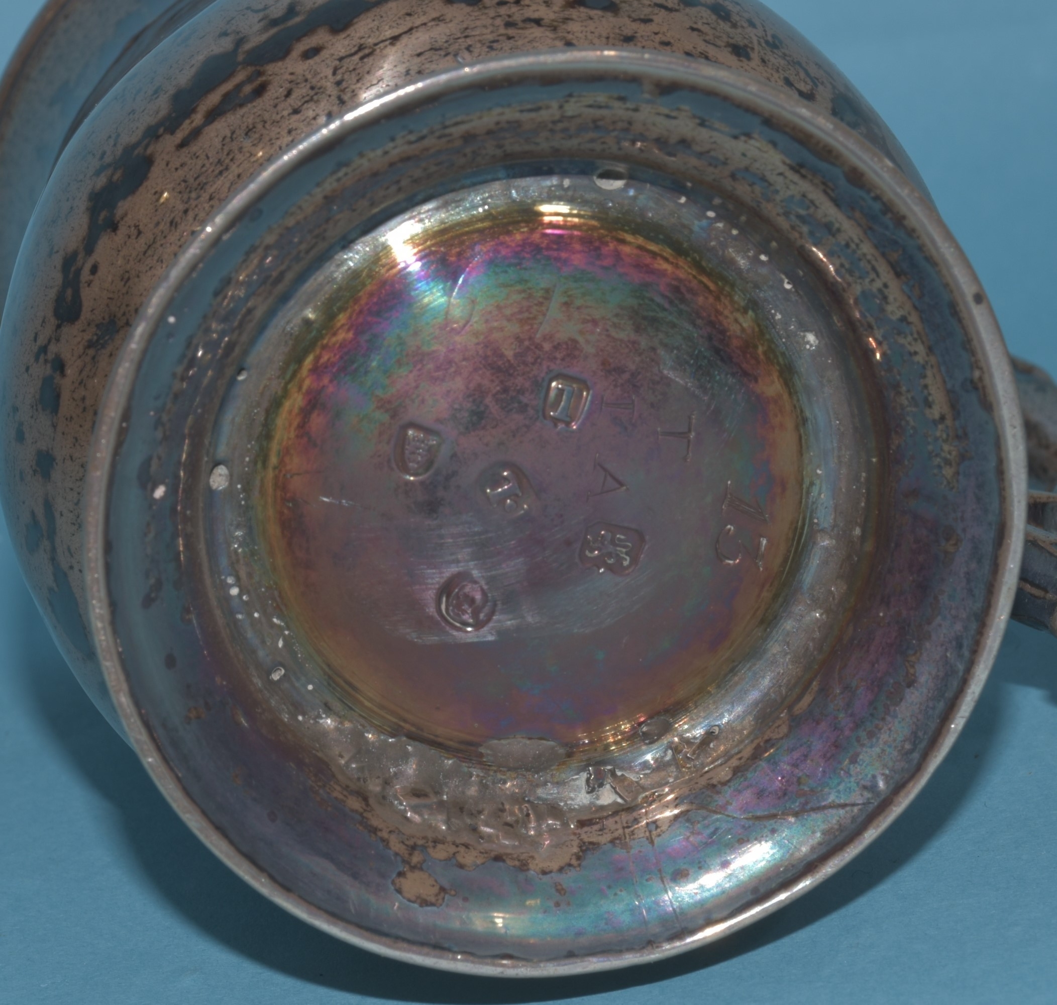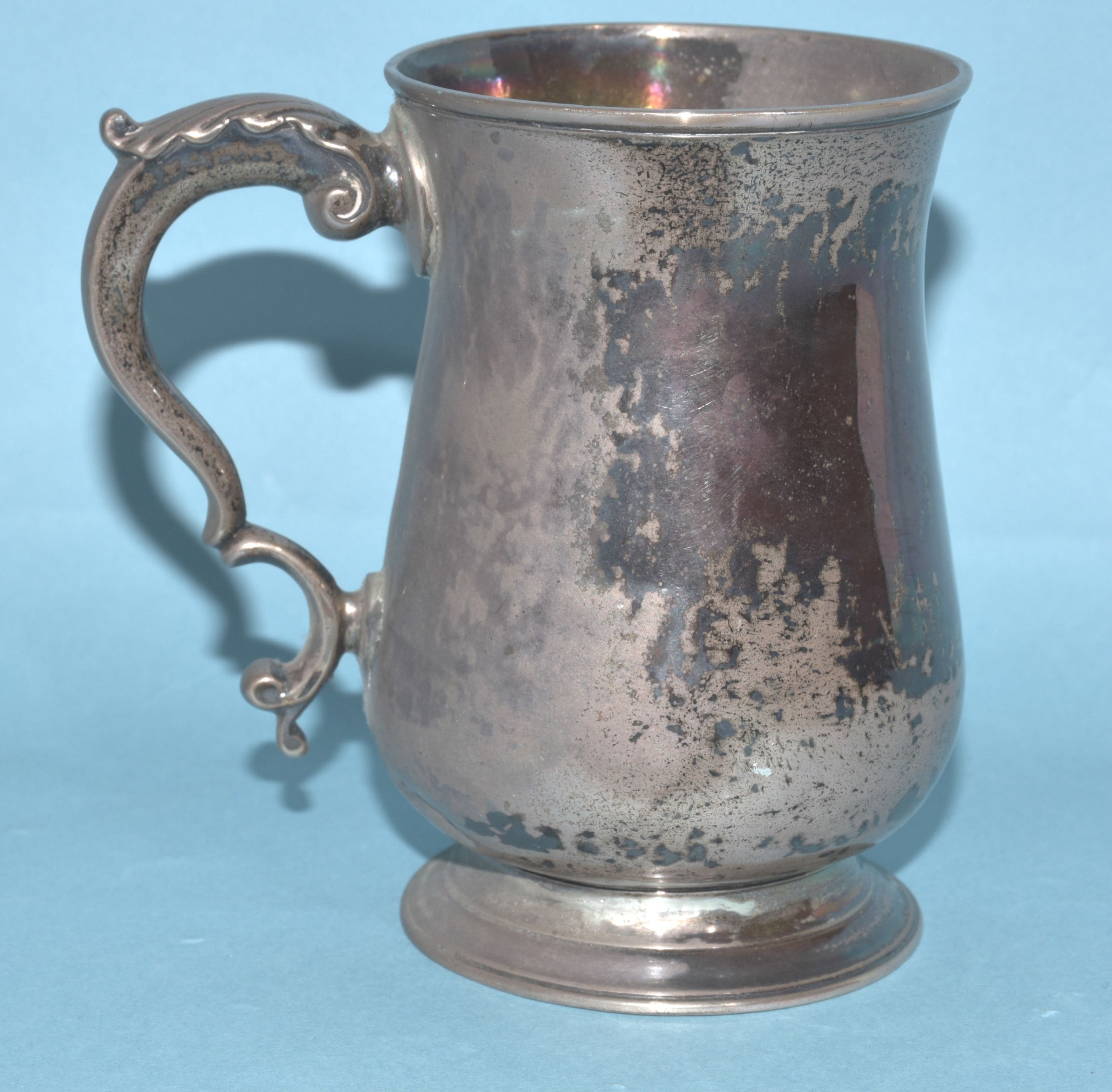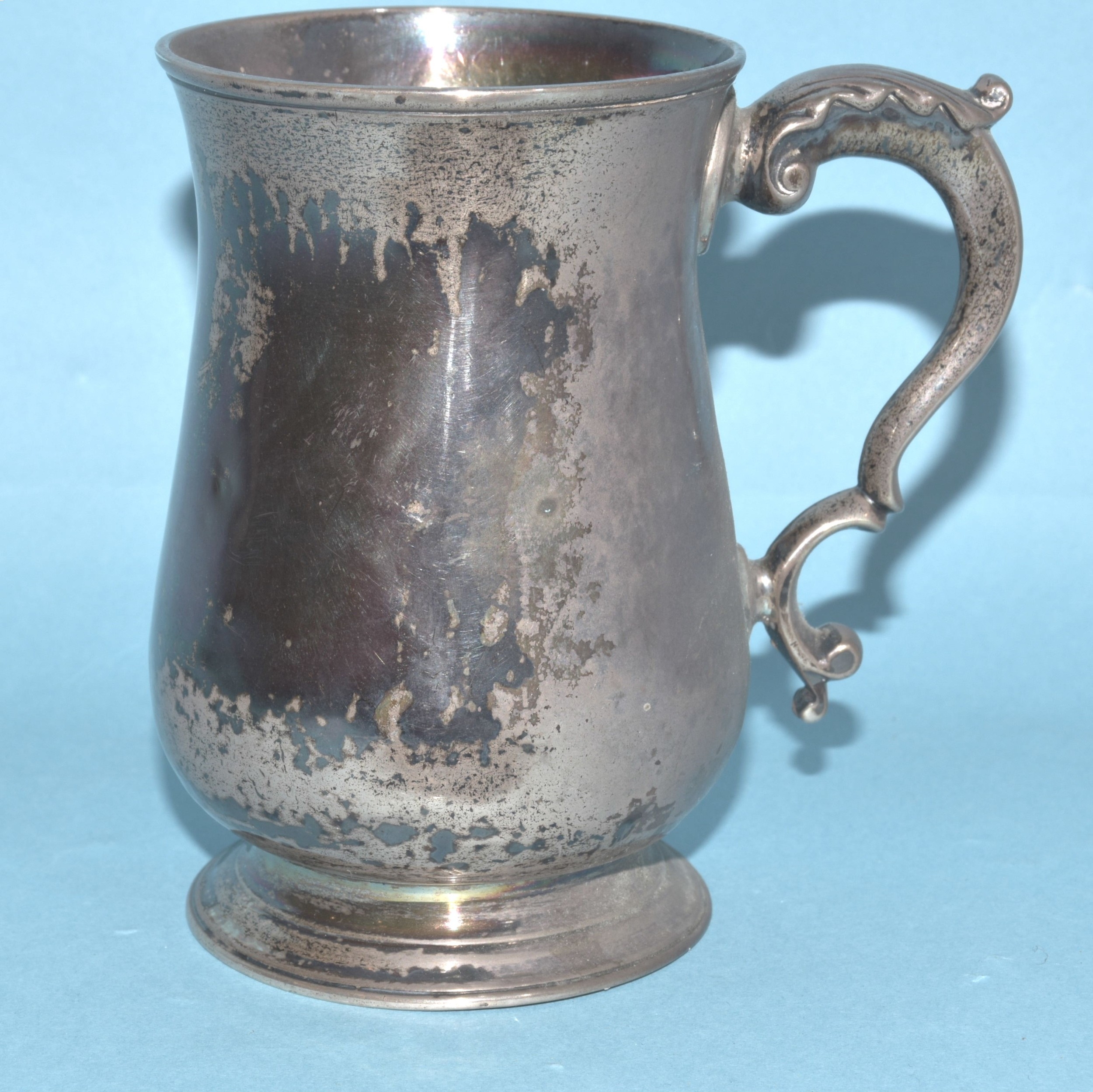 A George III small silver tankard of waisted form, with 'C'-scroll handle, London 1786, maker John Lambe, 10.5cm high, 182.7g, ___5.8oz.