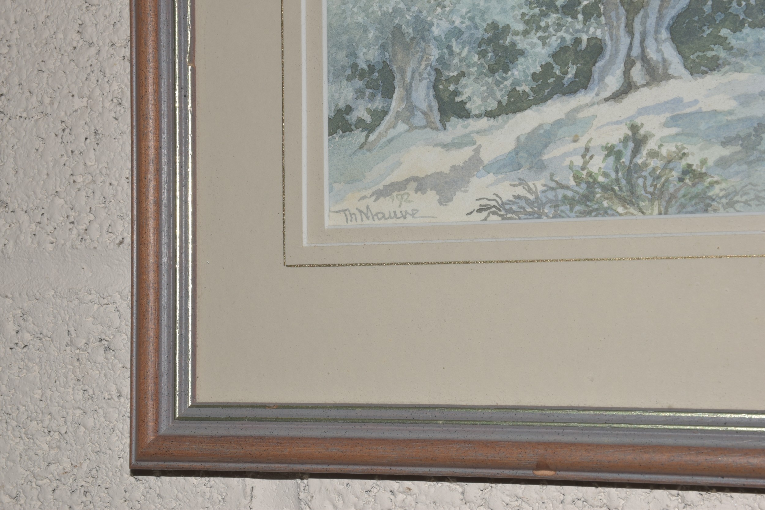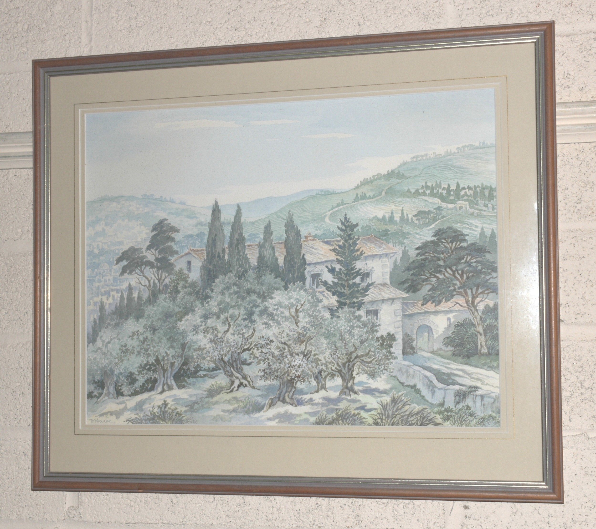 Thijs Mauve, 'Landscape with building in foreground amongst trees', signed watercolour, dated '92, 37 x 48cm.