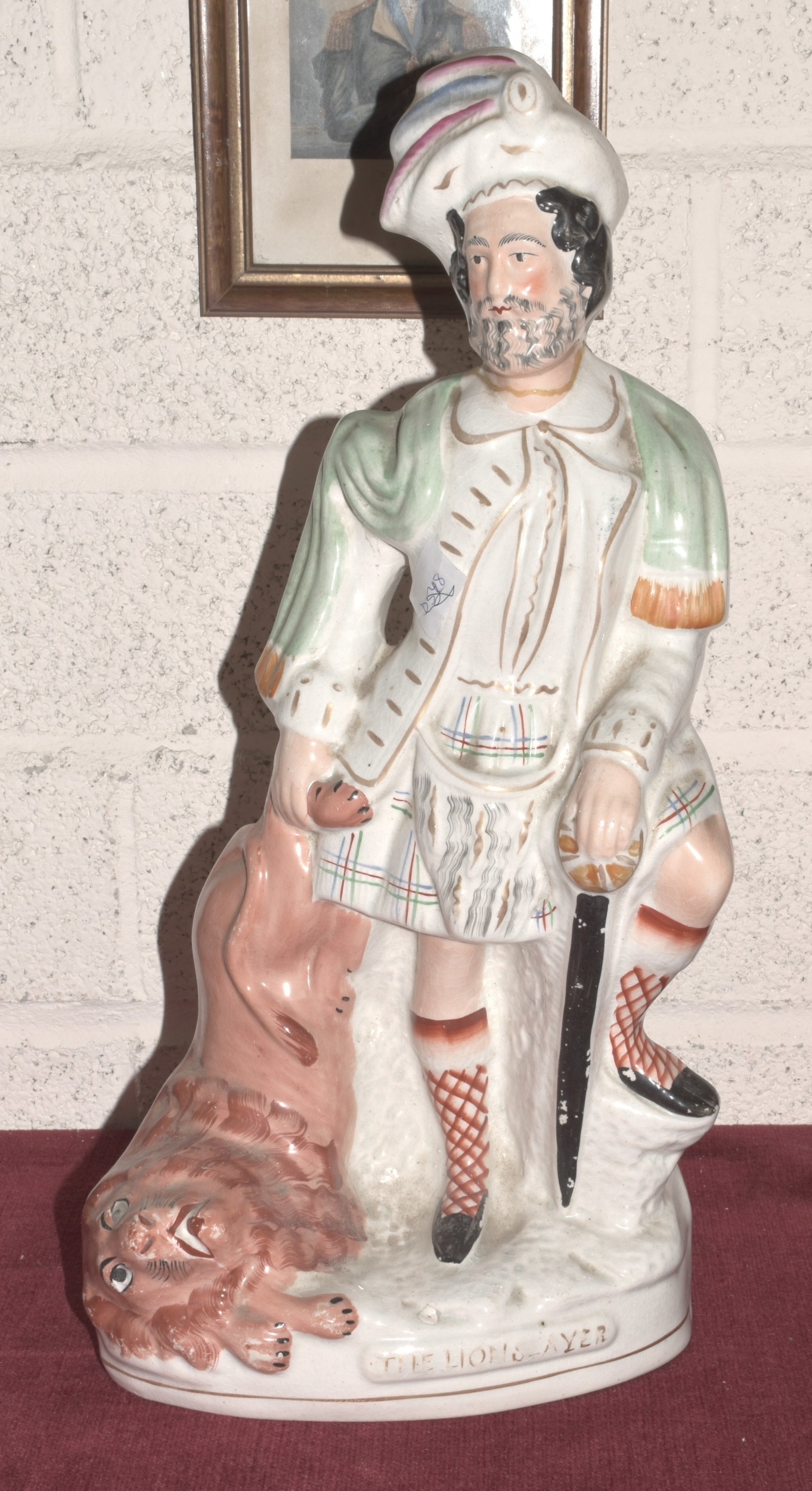 A 19th century Staffordshire figure 'The Lion Slayer', 42cm high, (head re-glued).