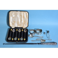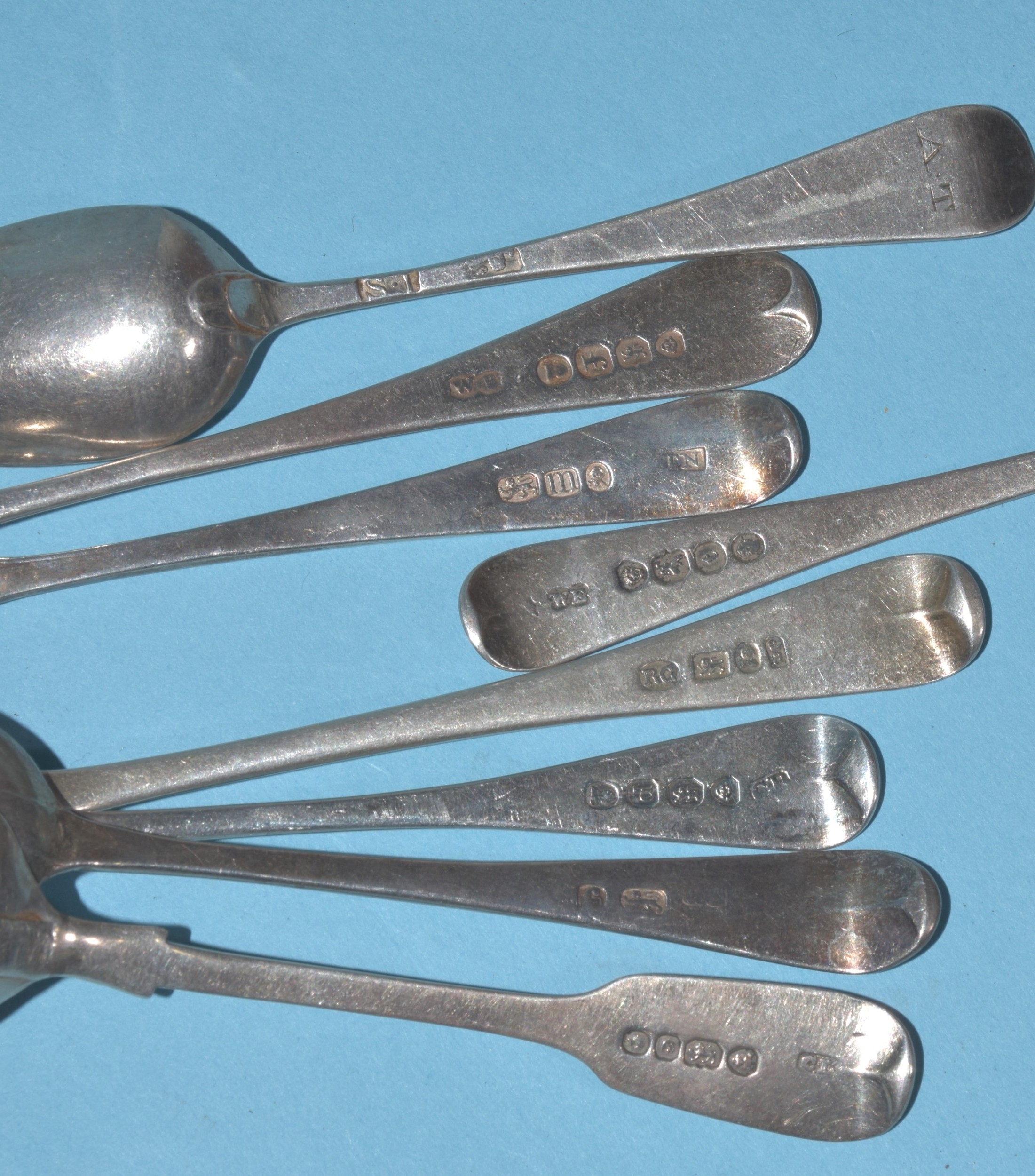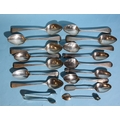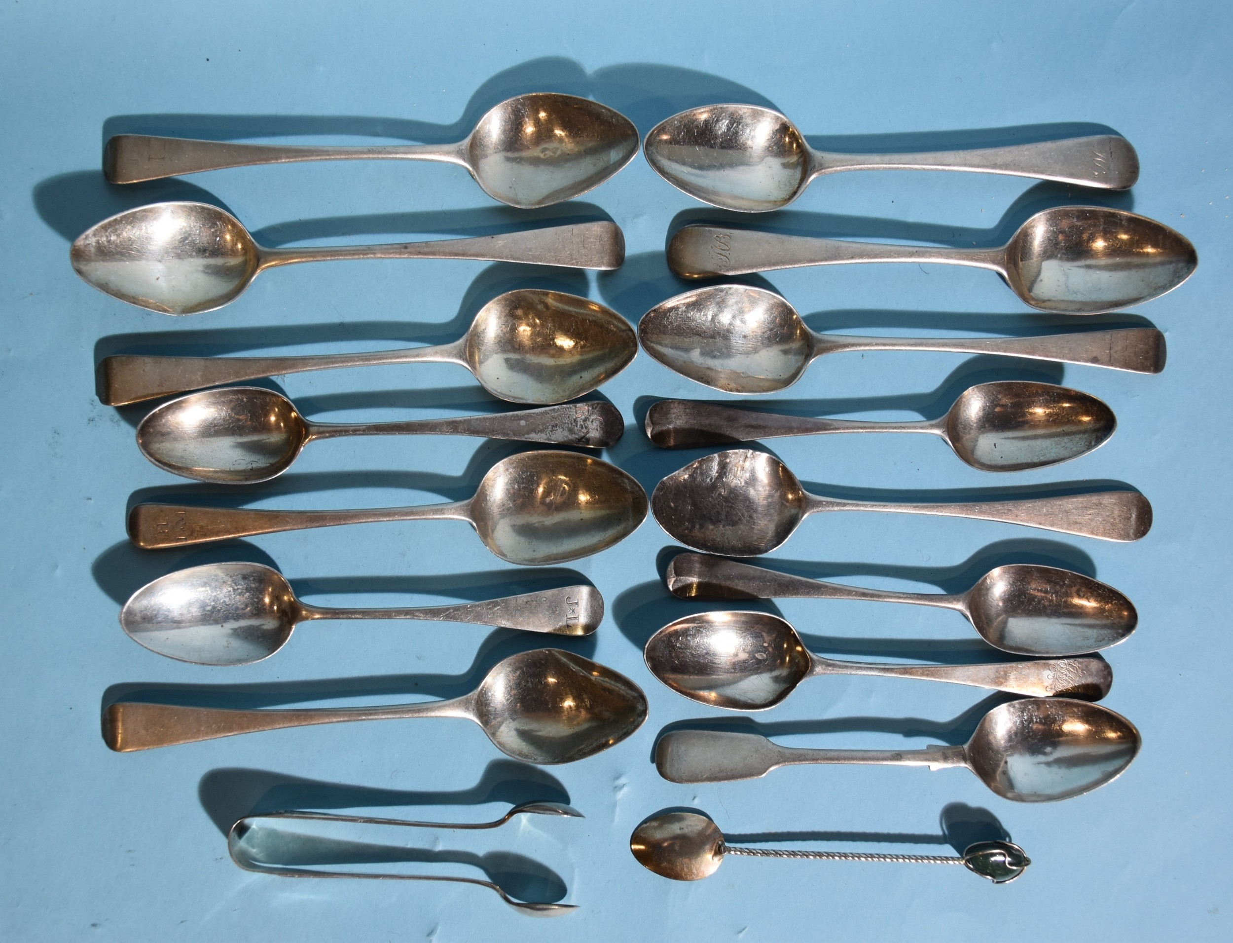 A collection of fifteen 19th century silver teaspoons, various dates and makers and a pair of silver sugar tongs, 236g, ___7.6oz.