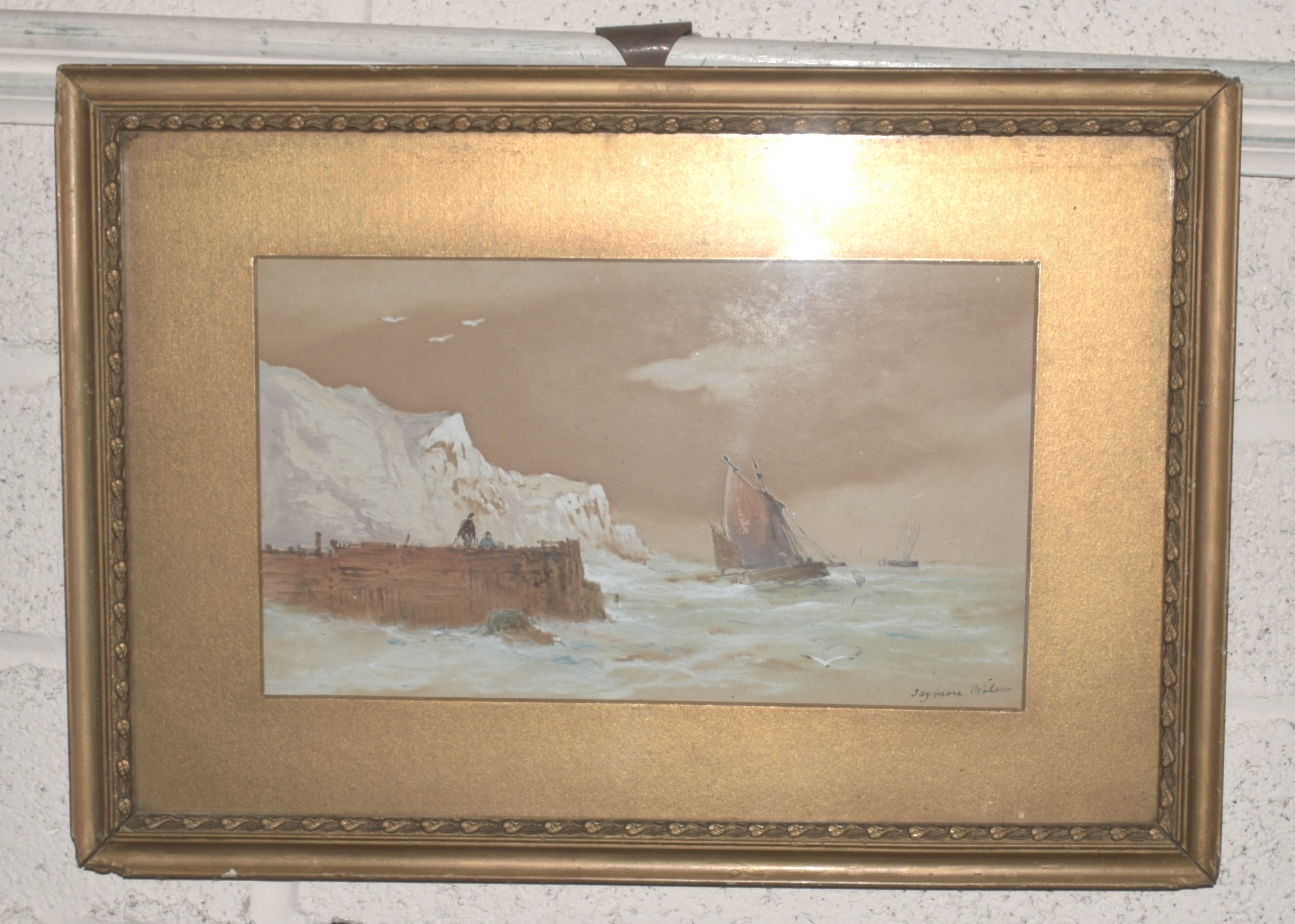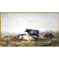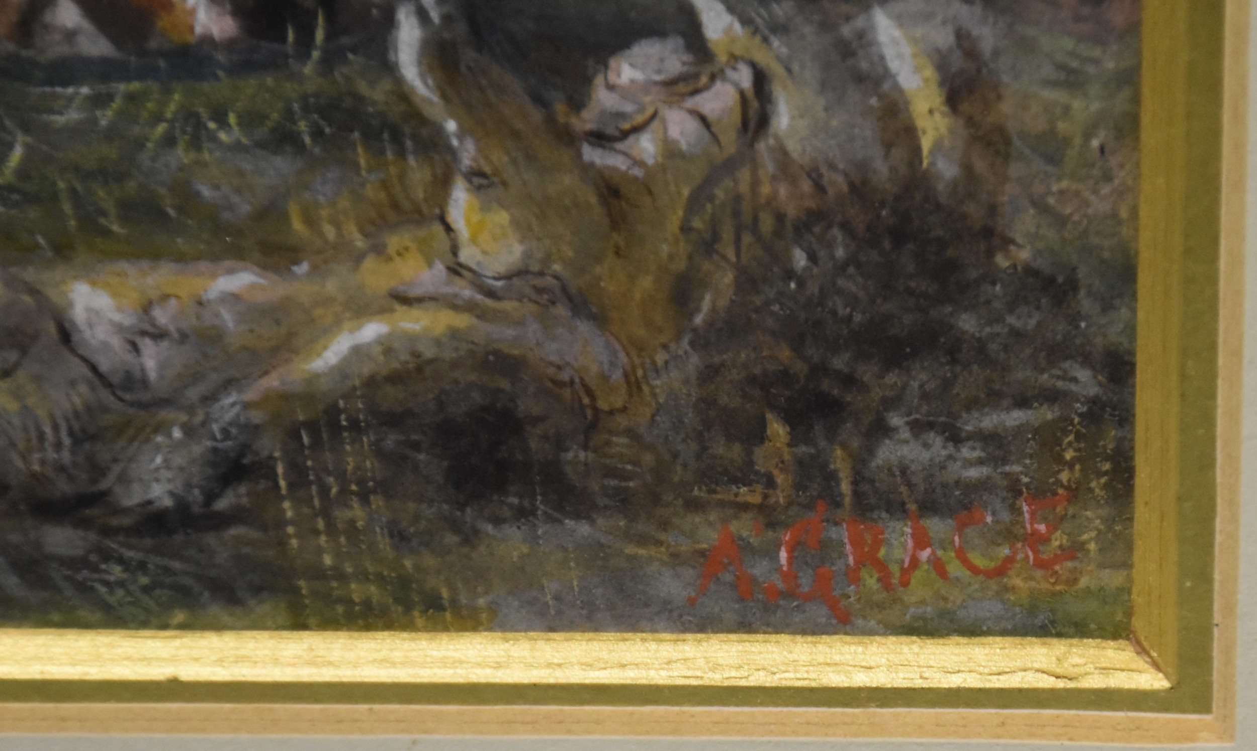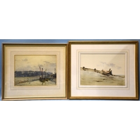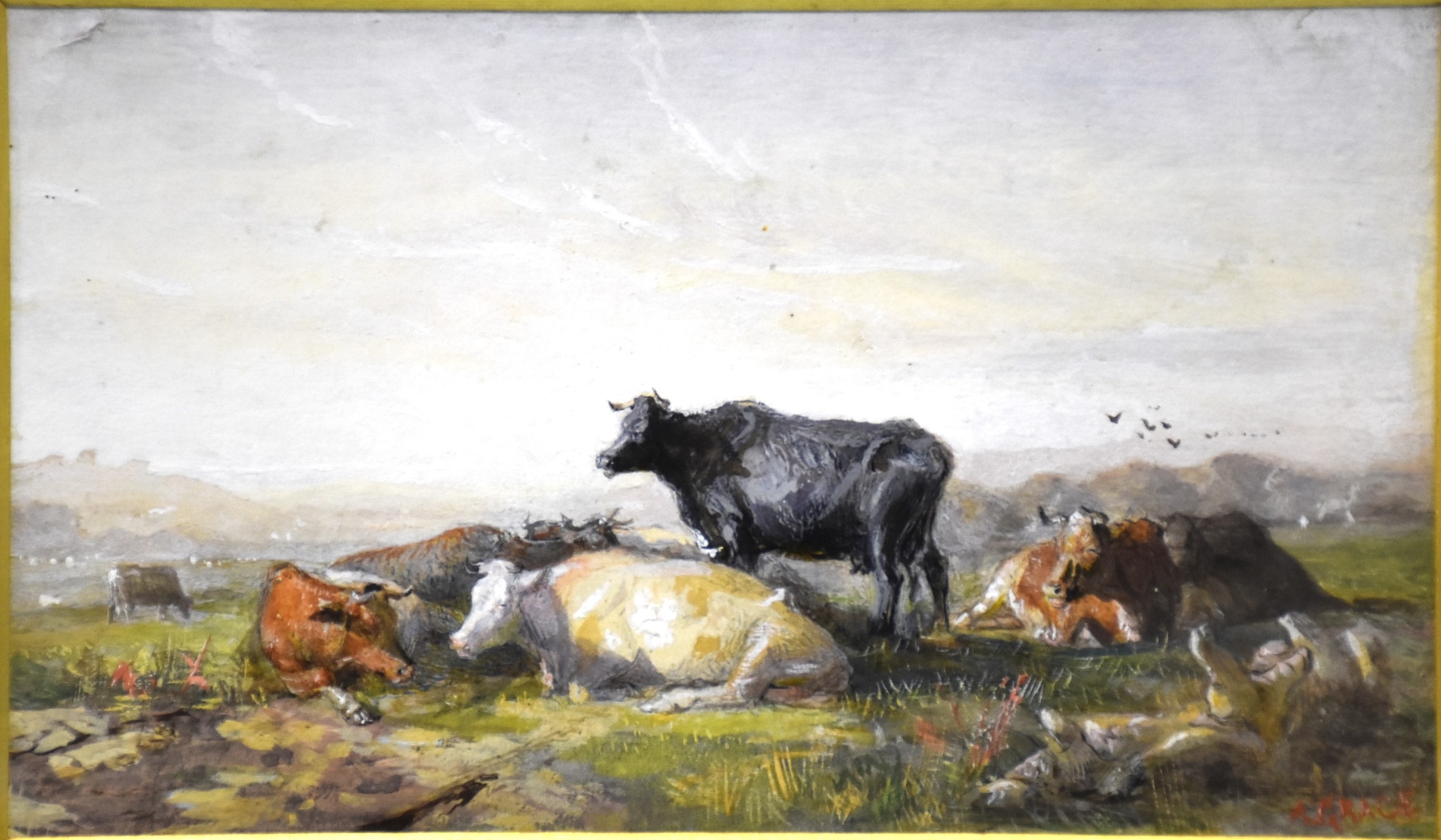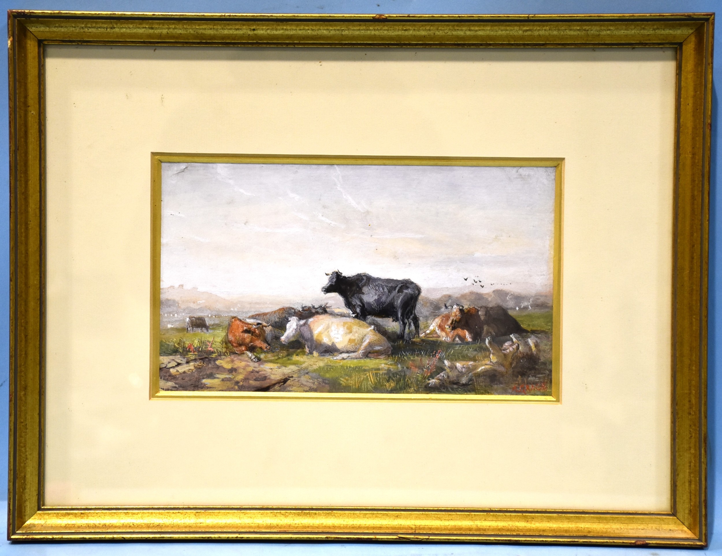 A Grace, 'Study of cattle resting in a pasture', signed gouache, 14 x 24cm, together with a watercolour depicting fishing boats off the coast, signed Seymore Wilson, 17 x 29cm, (2).