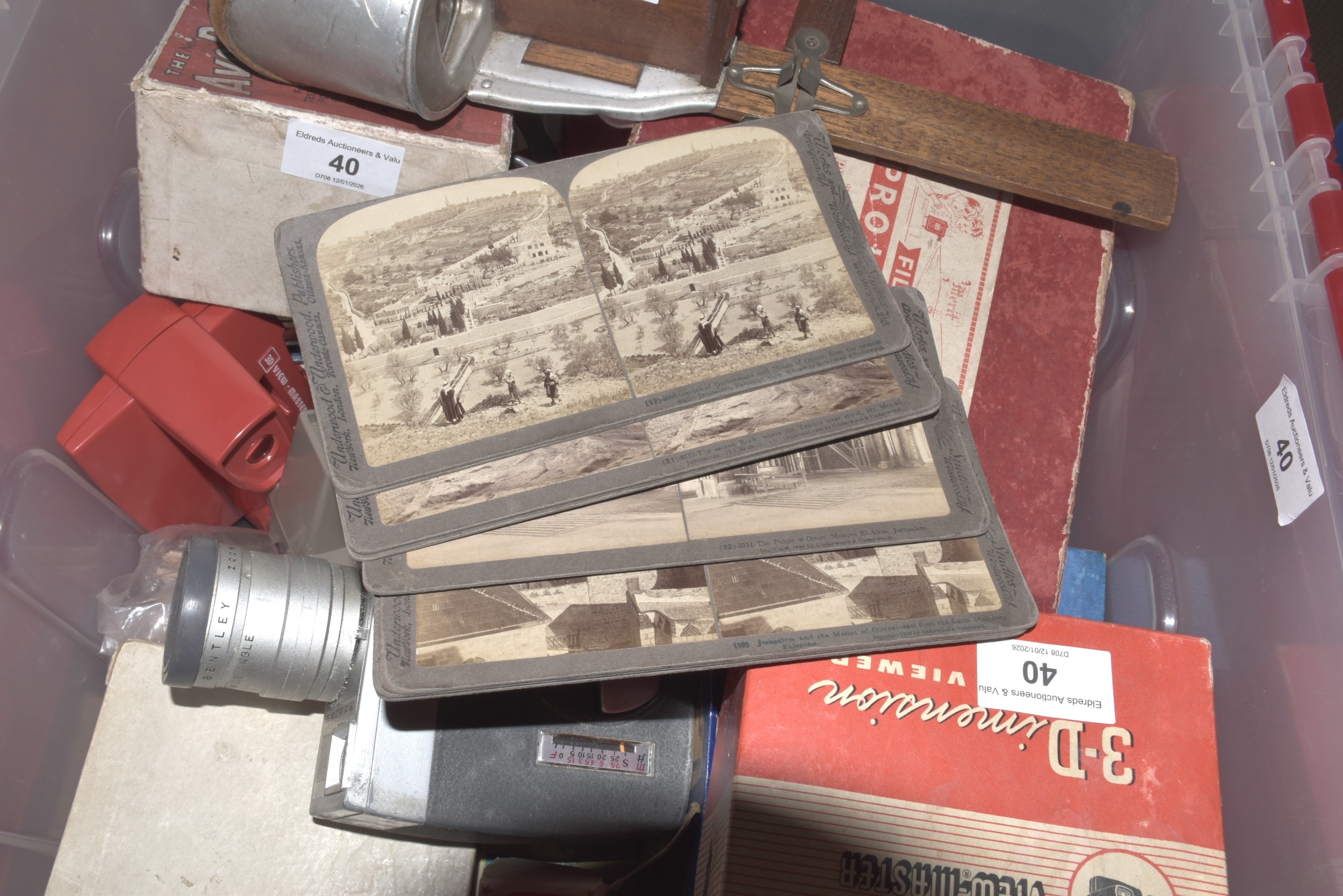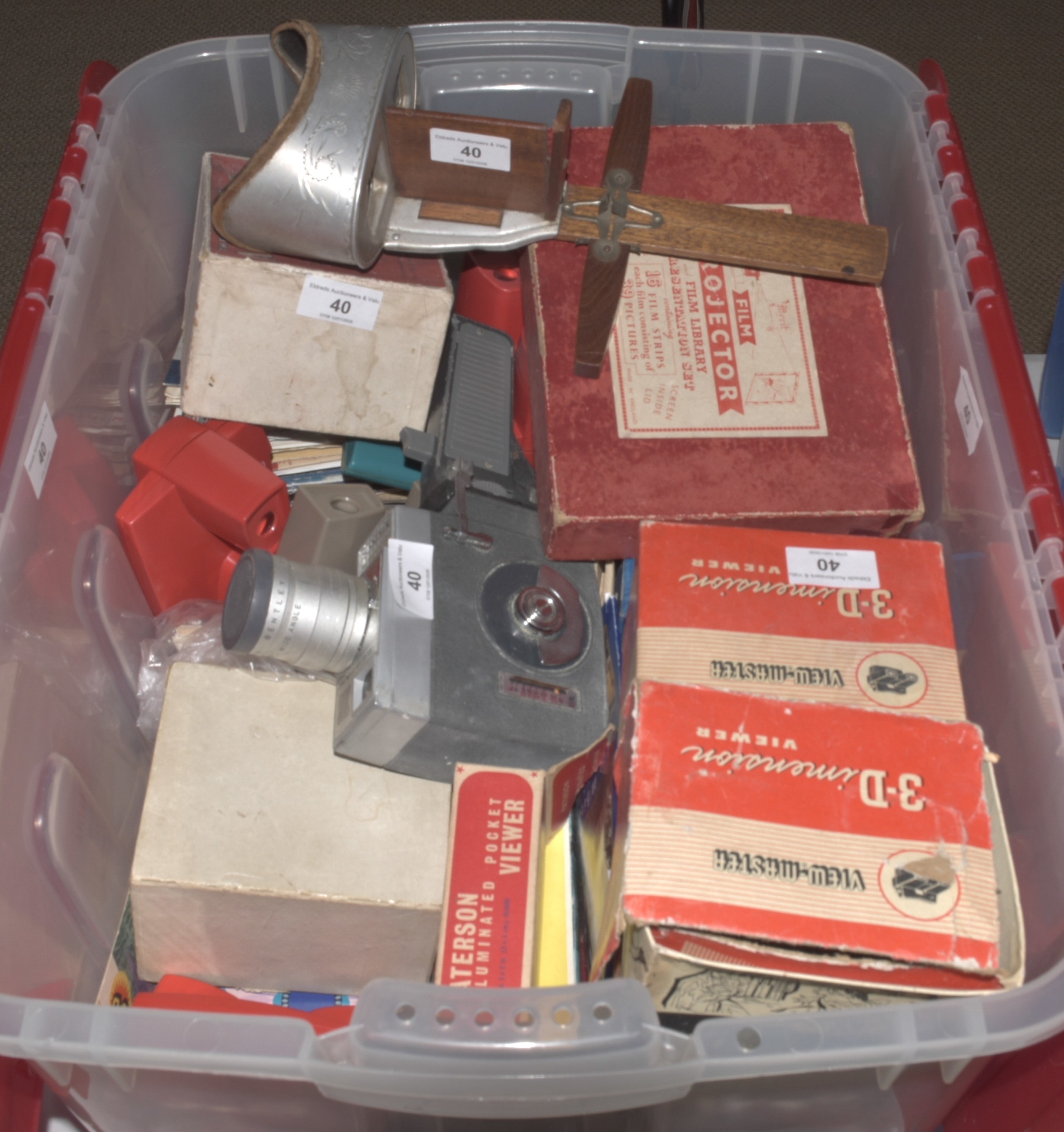 An Underwood & Underwood stereoscopic viewer and cards, a Merit film projector presentation set, (boxed), a large quantity of View-Master viewers, (mainly boxed) and other items.
