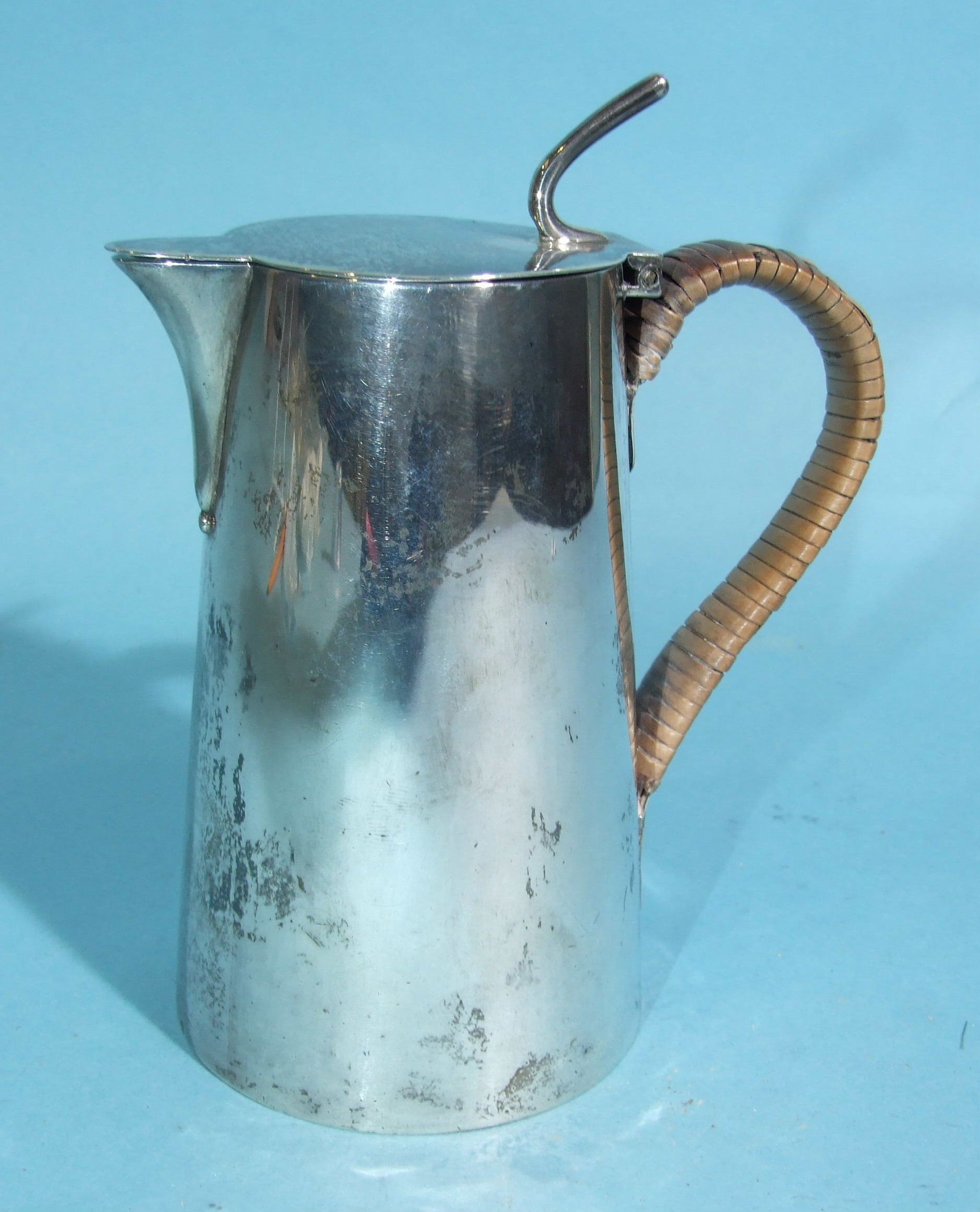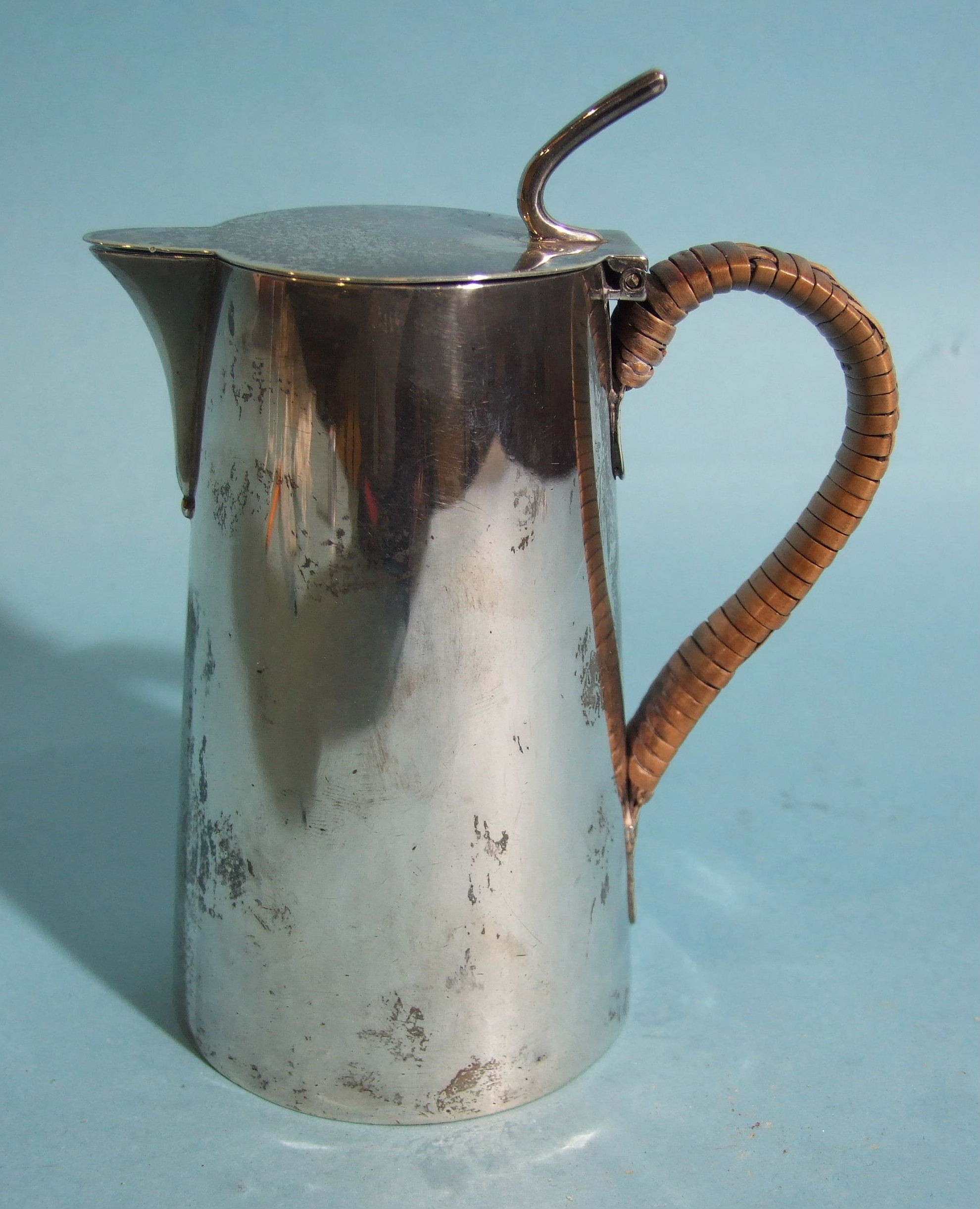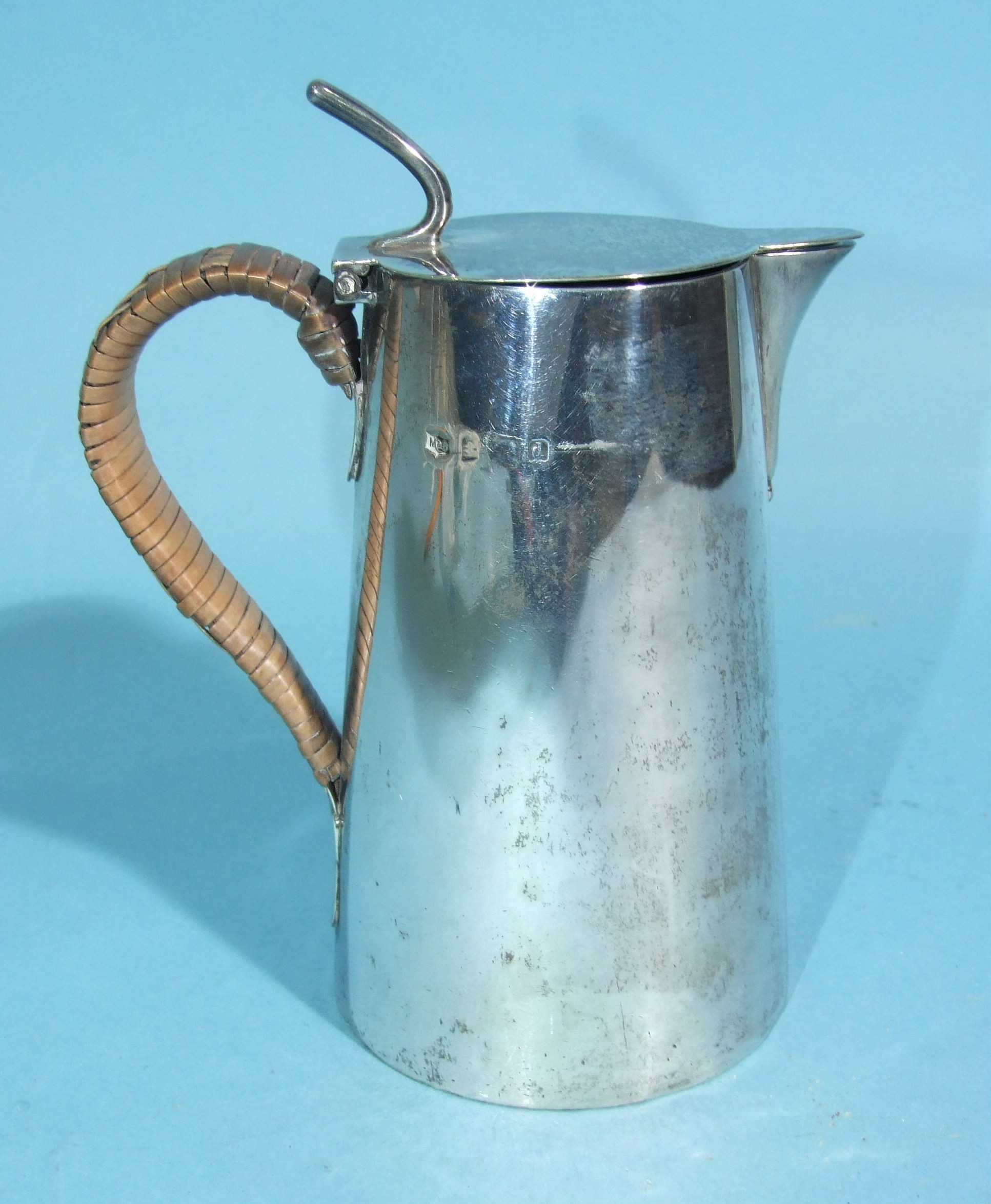 An Edwardian silver chocolate pot with raffia-covered handle, 13.5cm high, Birmingham 1903, maker MB, gross weight 189.4g, ___6oz.