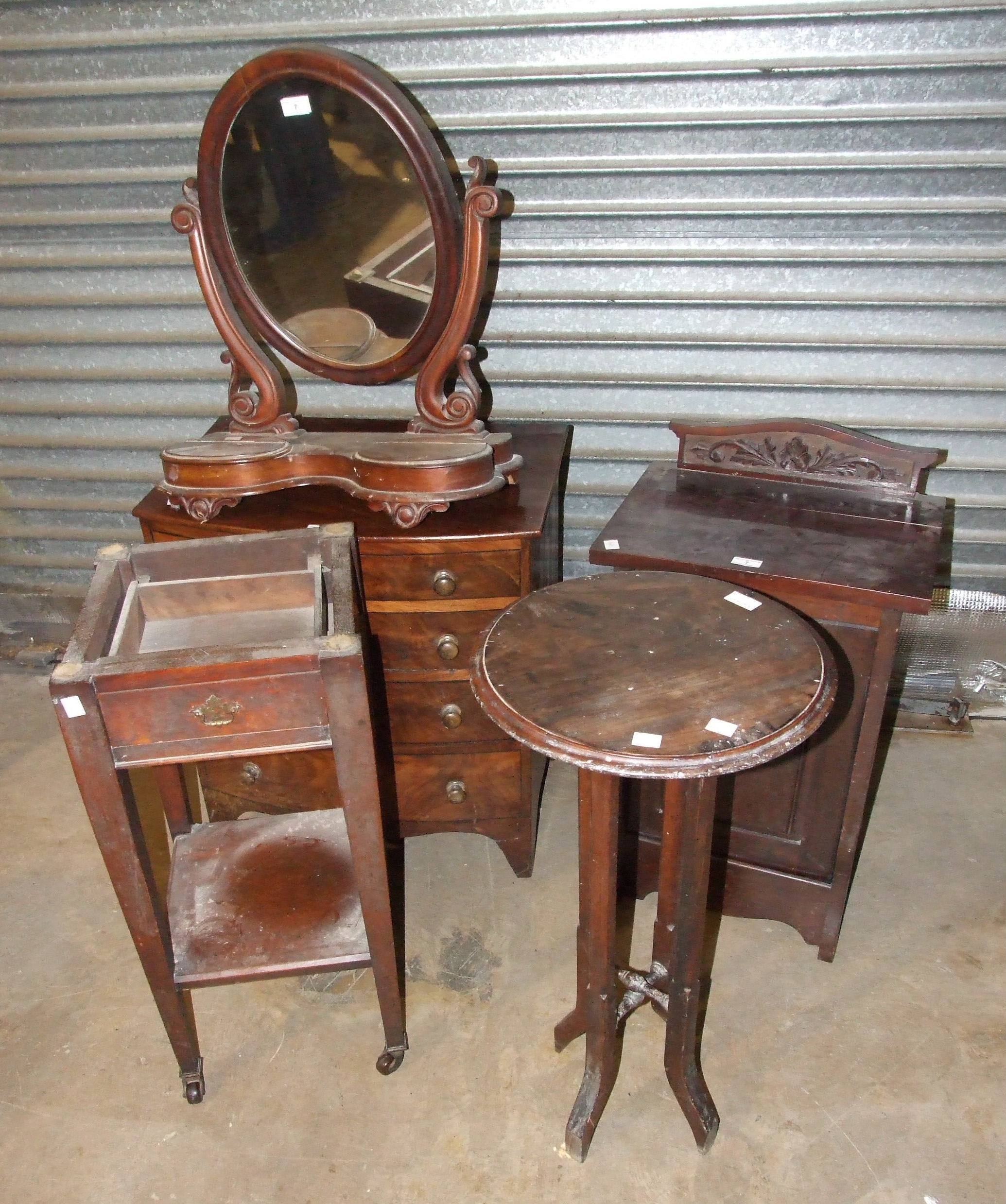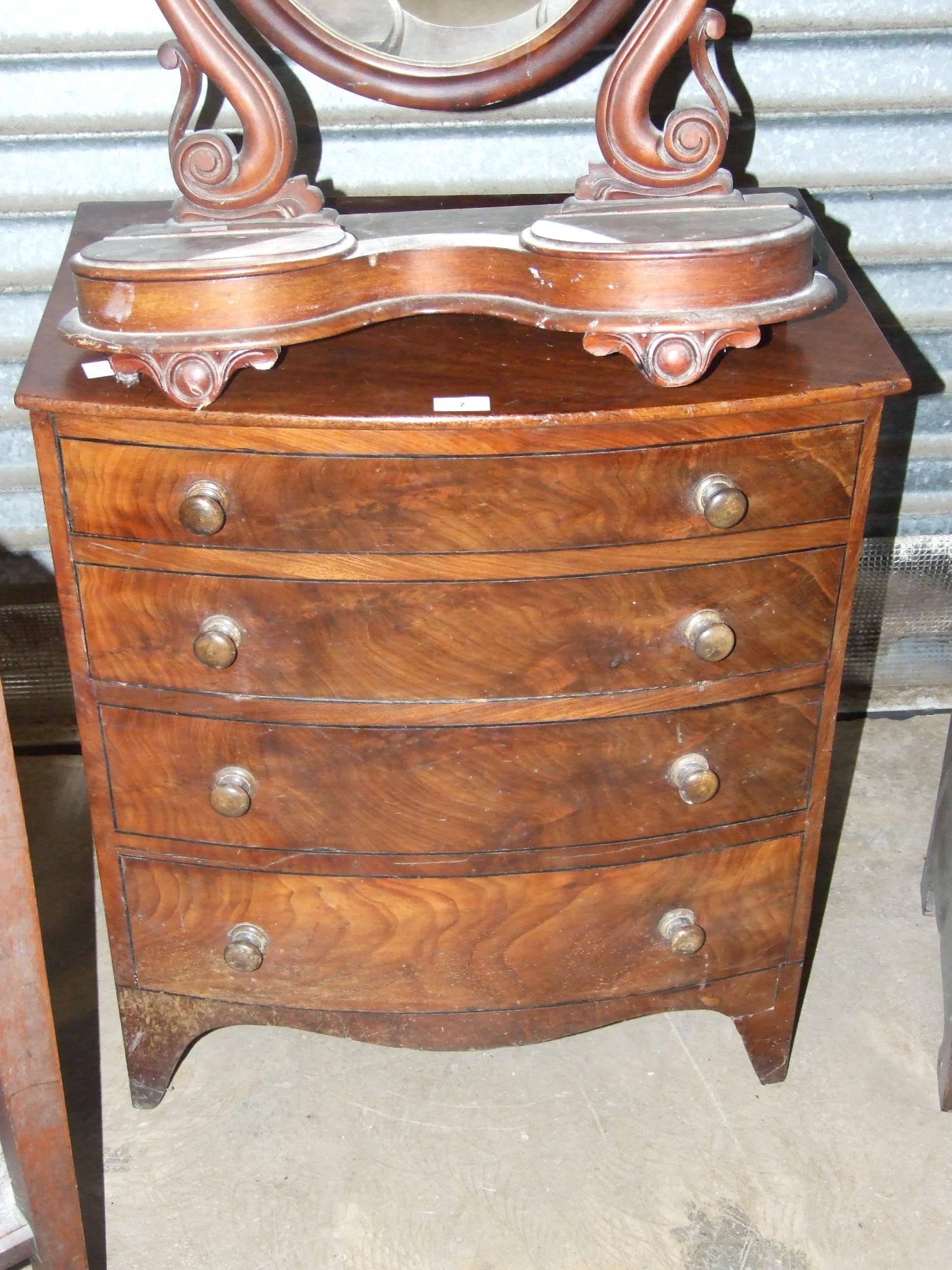 A Georgian mahogany bow-fronted commode, 64cm wide, 71cm high, a coal purdonium and other items.